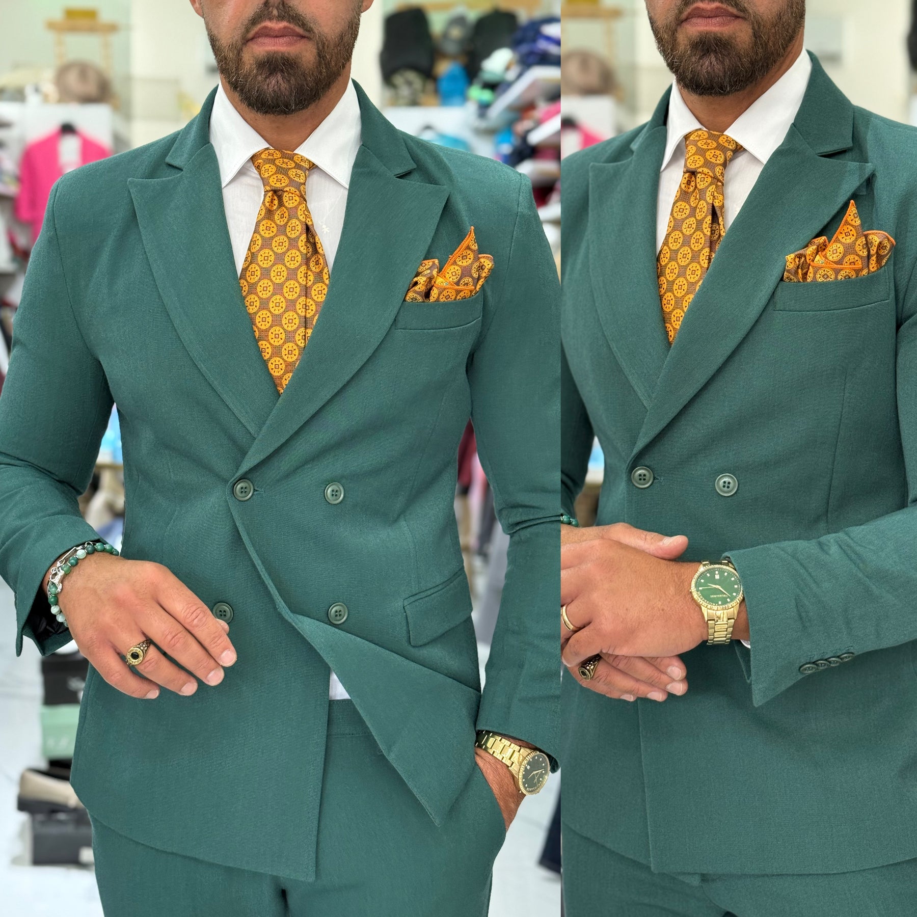 Abito doppiopetto verde Gucci Positano Il modello indossa 50