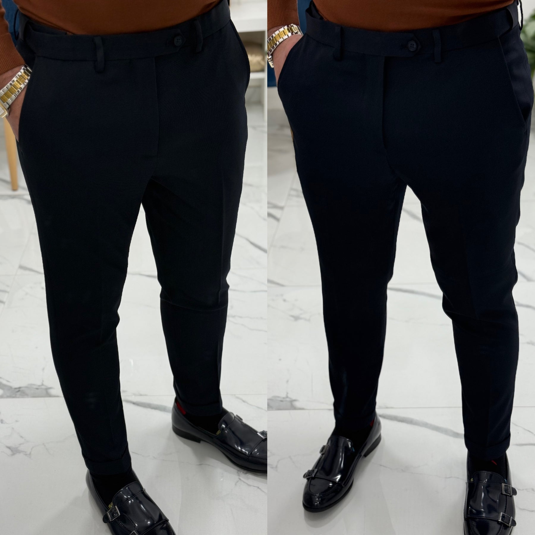 Abiti doppiopetto Montecarlo Ddsmile Pantalone con bottone e elastico all interno della vita il modello indossa 50