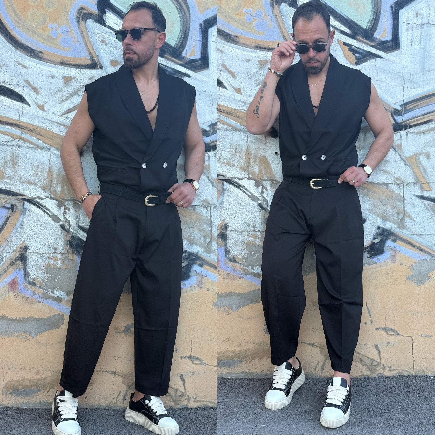 Coordinato giacca smanicata e japan ballon Florida Il modello indossa L