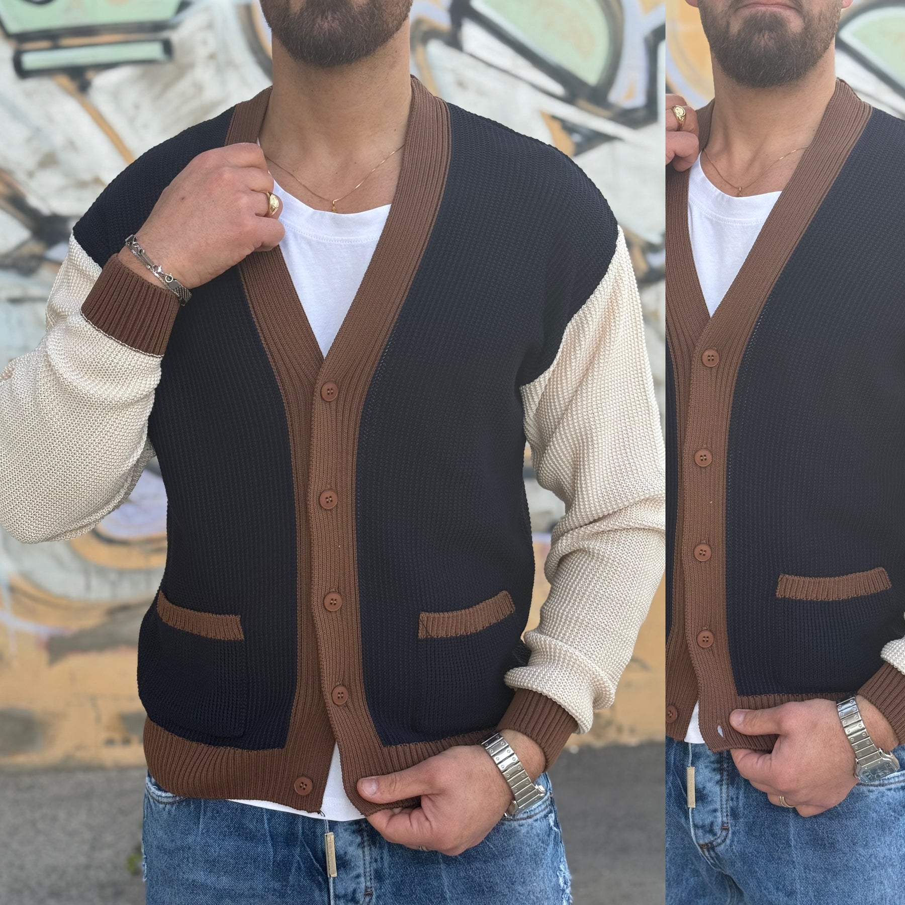 Cardigan monopetto limited Monaco di filo Il modello indossa M