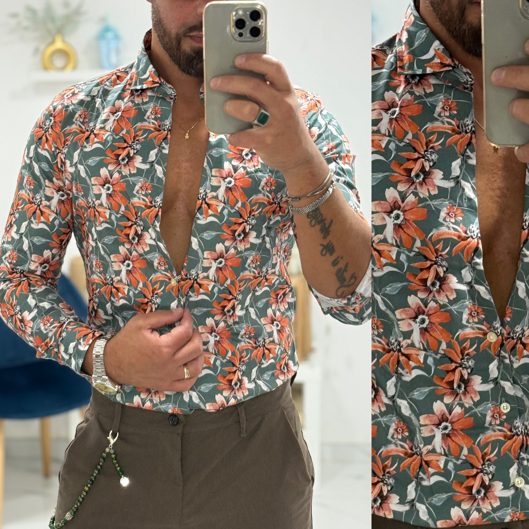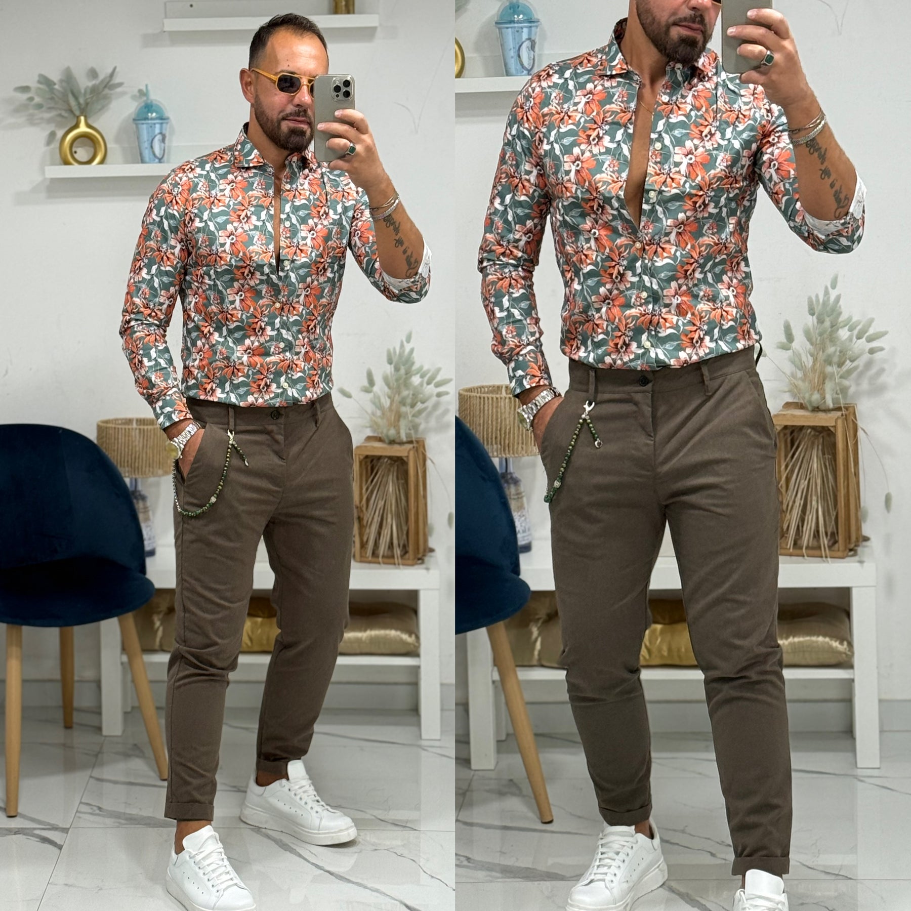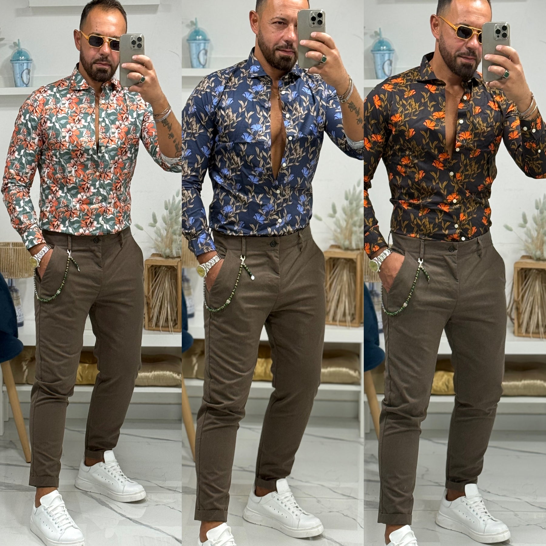 Combo pantalone e camicia Floreal il modello indossa L/48 scegli il colore della tua camicia il pantalone e’ sempre Safari alla Capri