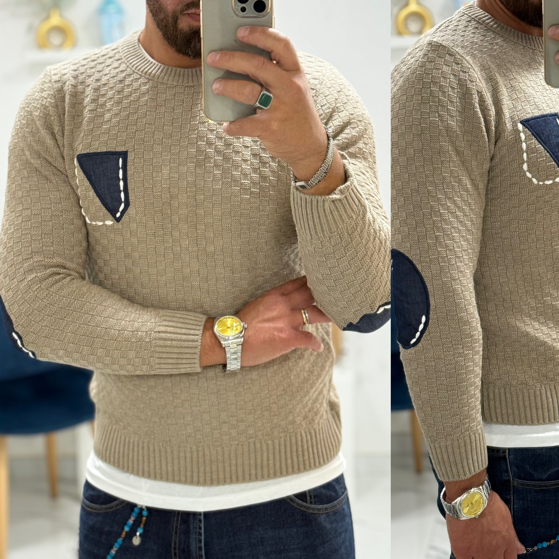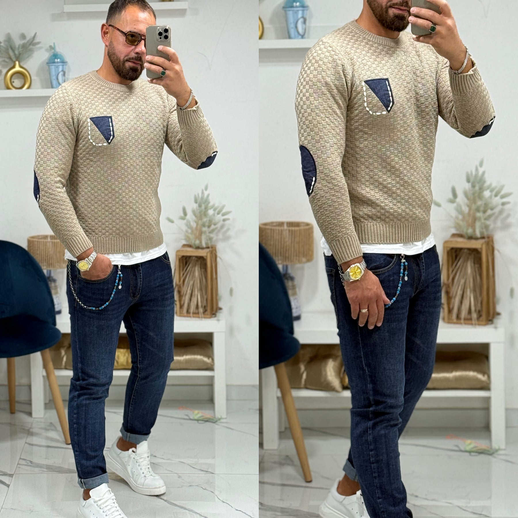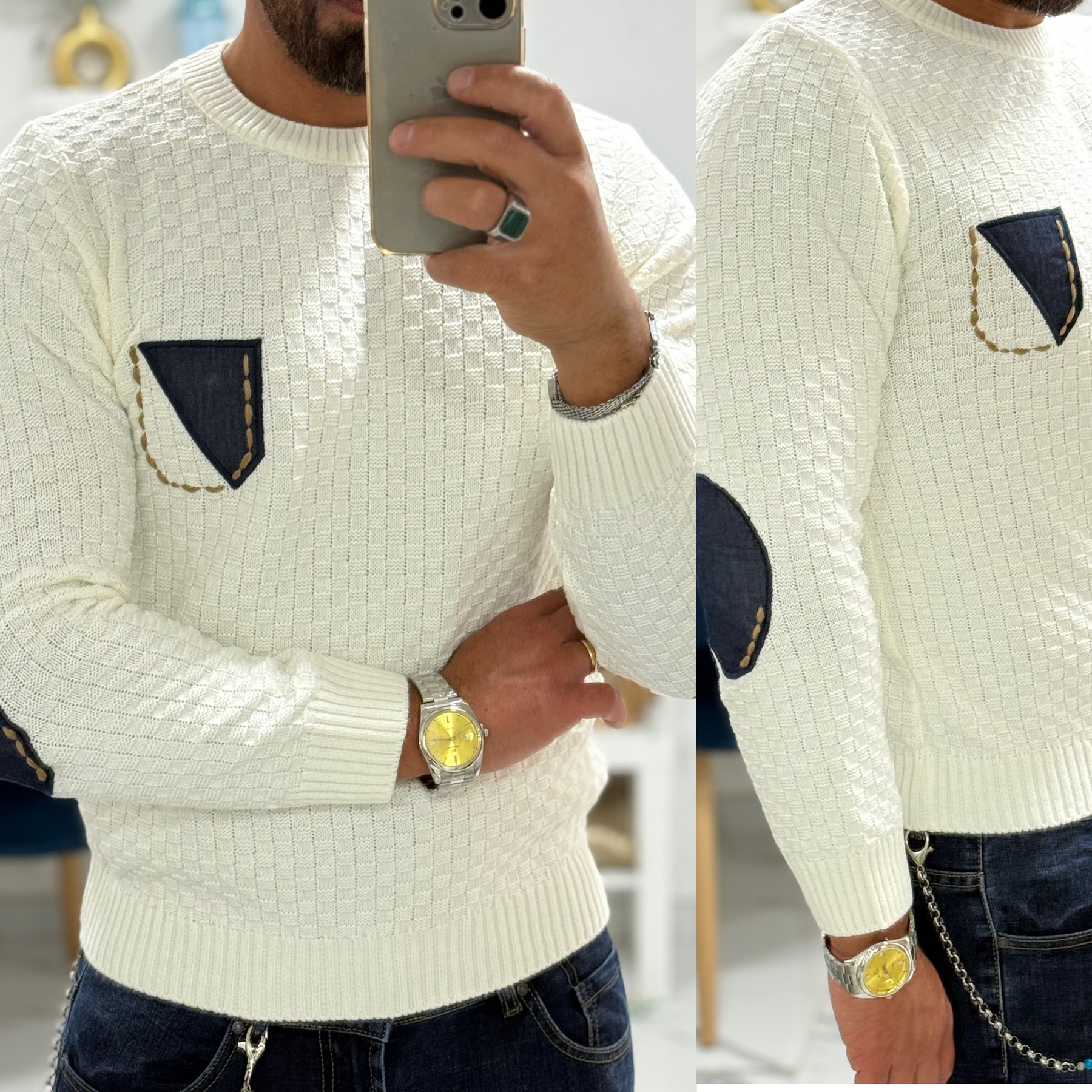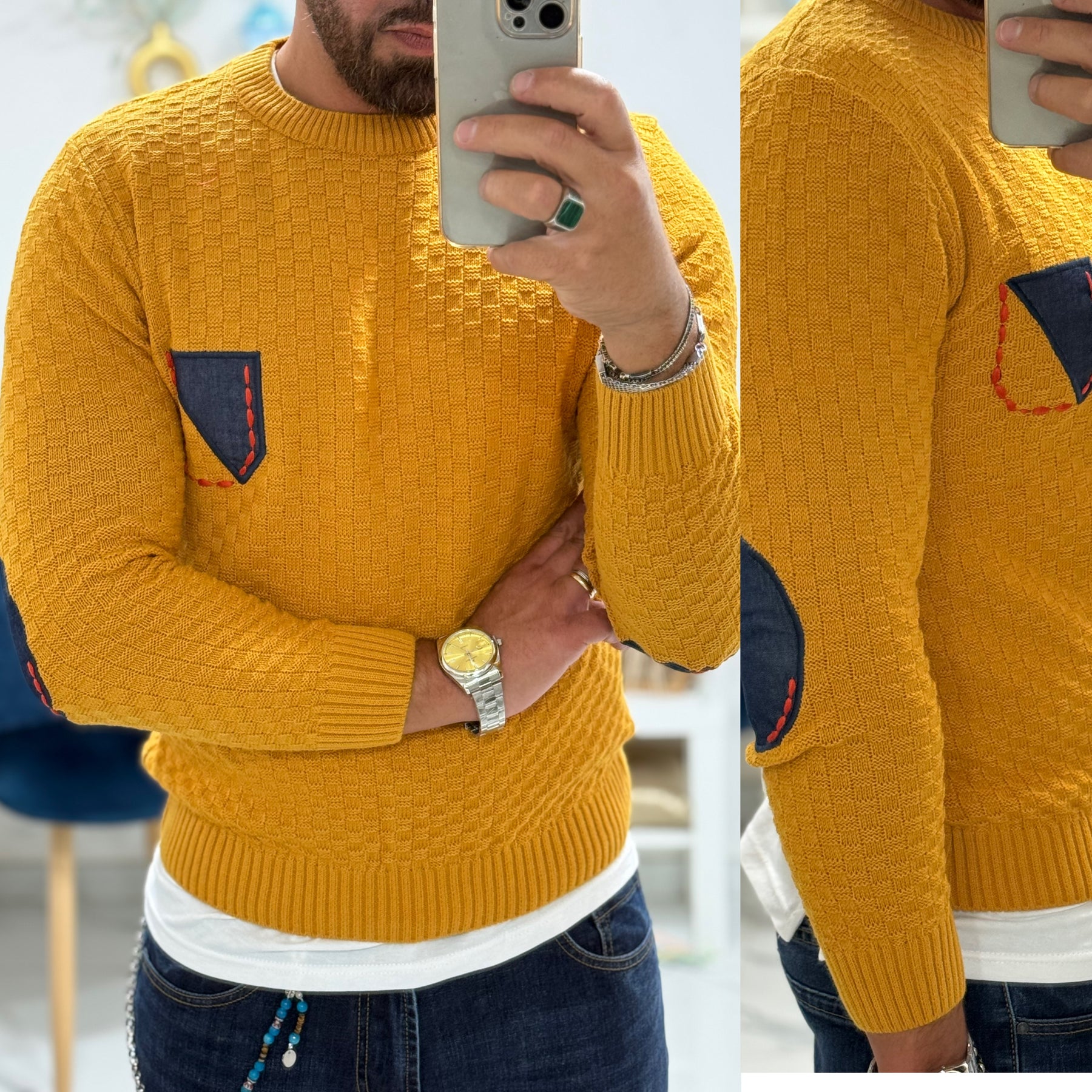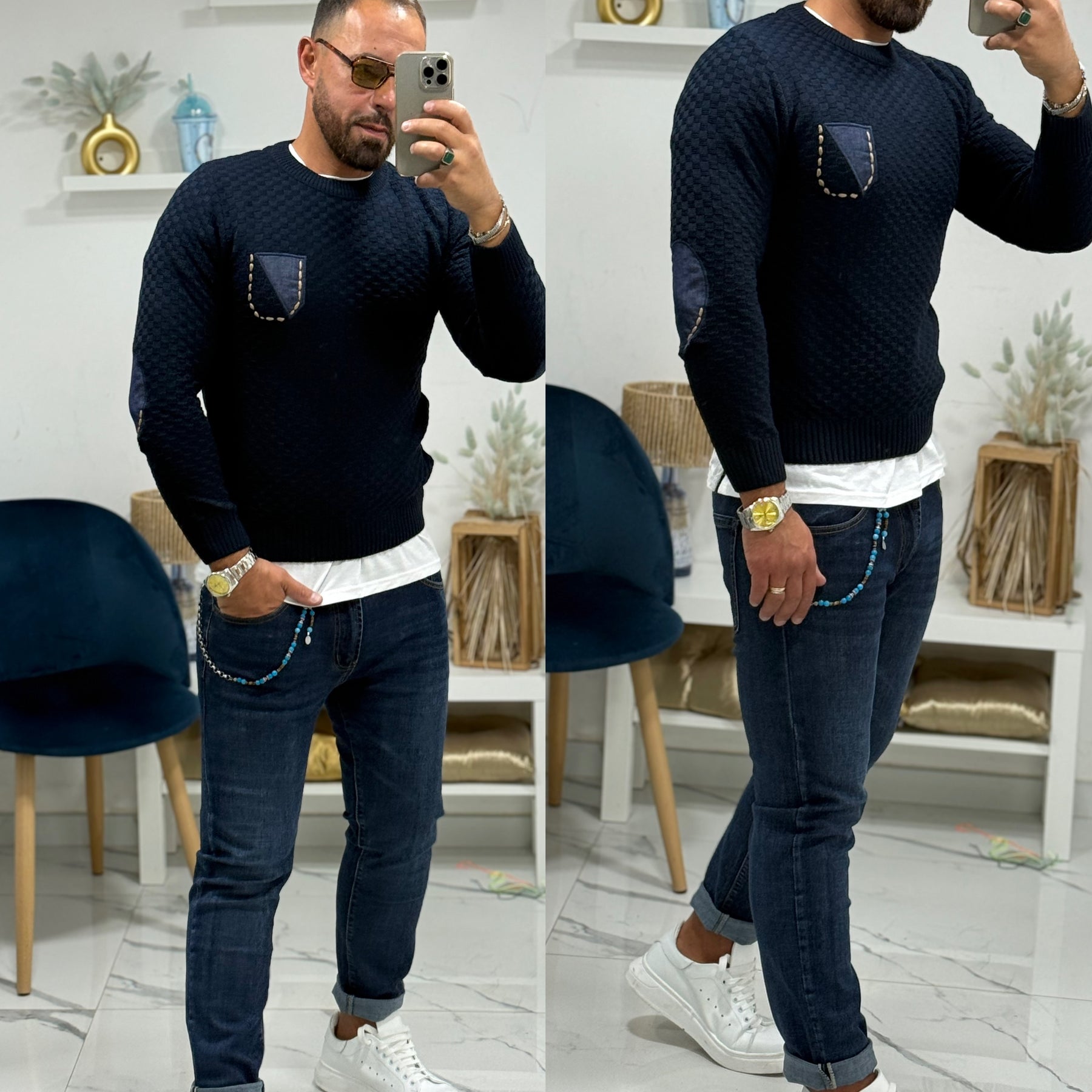 Maglioncino toppa e pochette uguale Italian Girocollo il modello indossa L