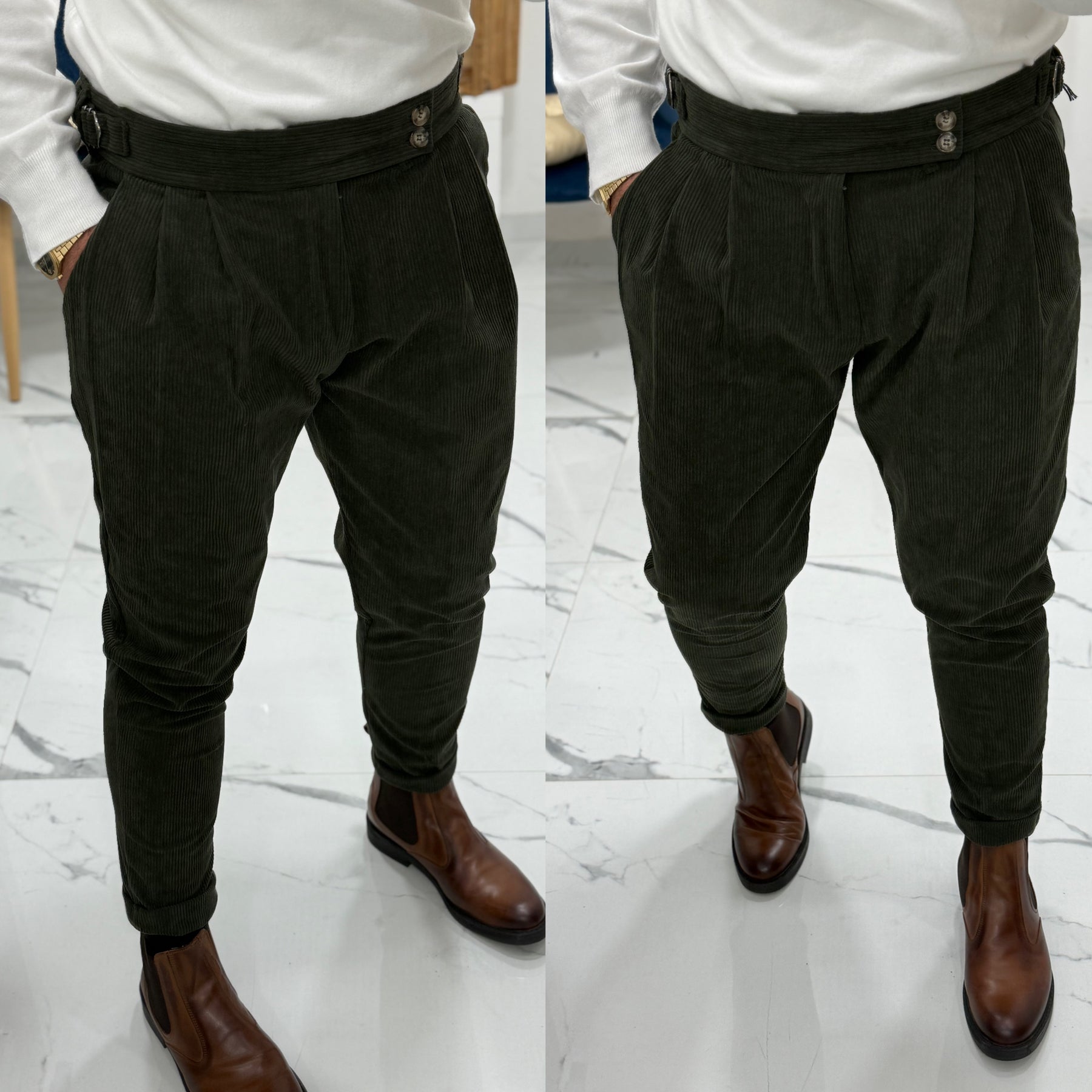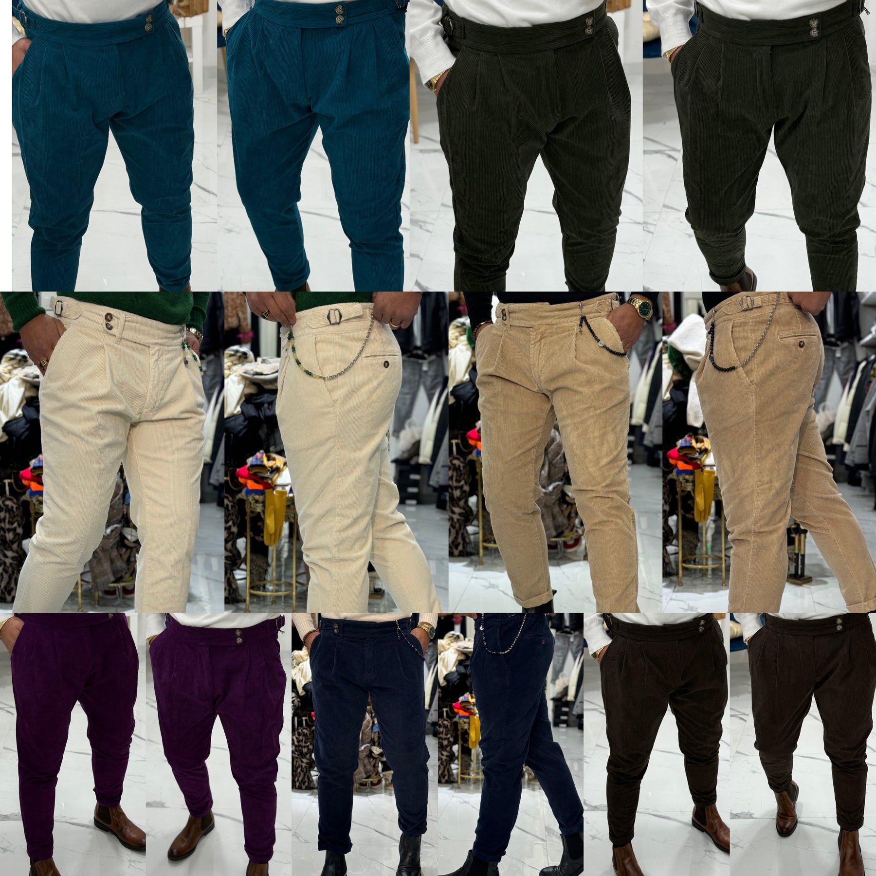 Pantalone vita alta in velluto Telamira Fibia laterale alla Capri il modello indossa 48