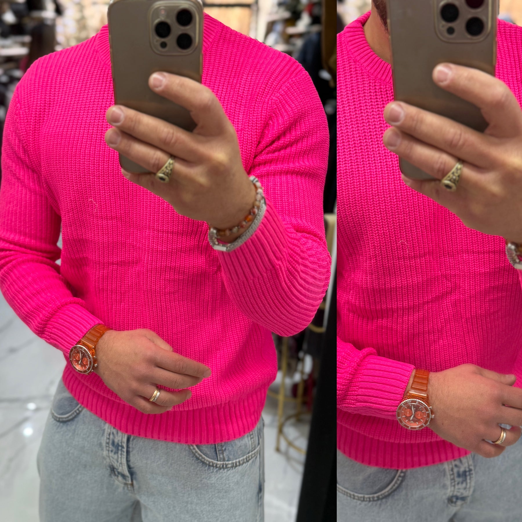 Maglione fucsia Girocollo Ddsmile Il modello indossa M