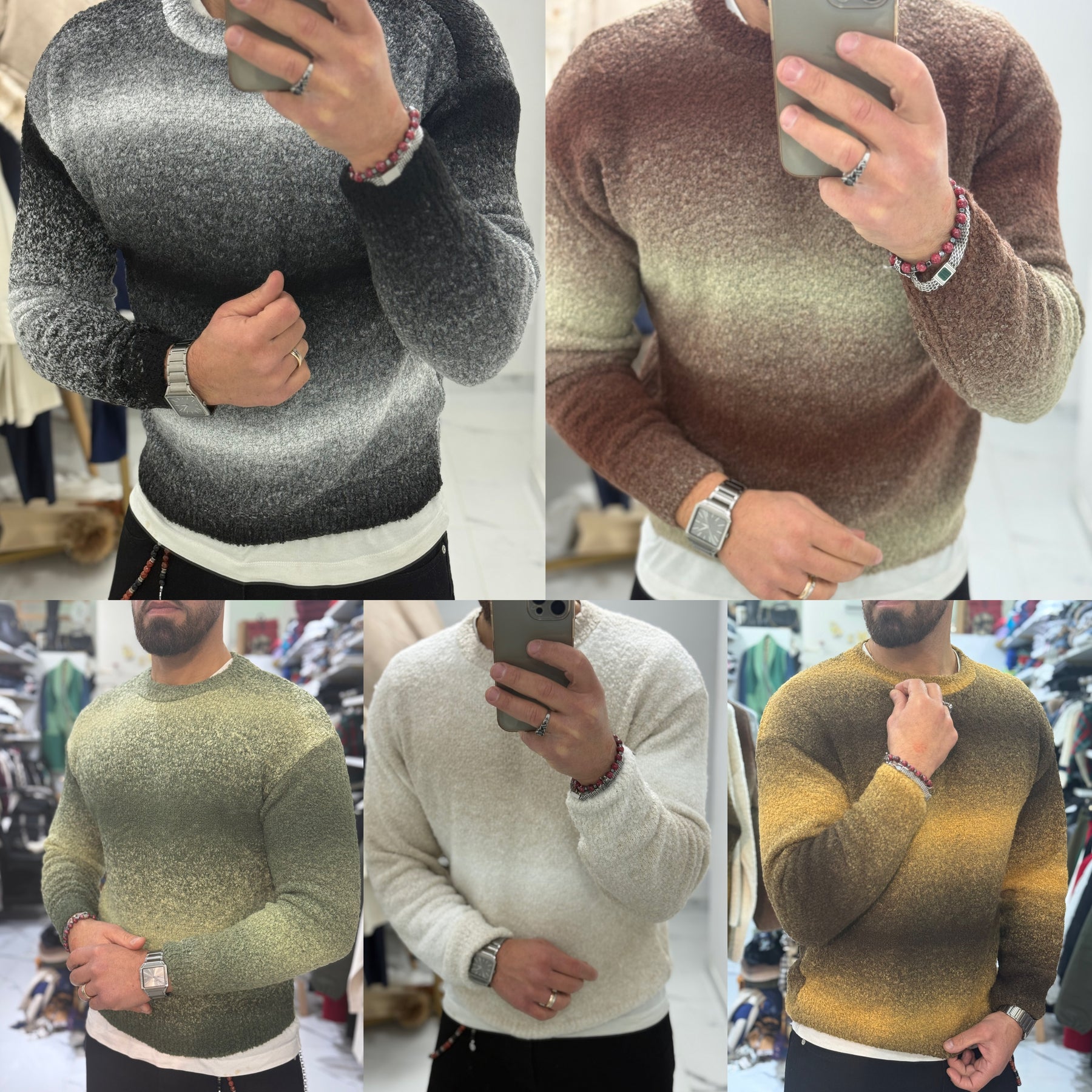 Maglione girocollo sfumato bouclé Made in Italy morbidissimo e caldo il modello indossa L