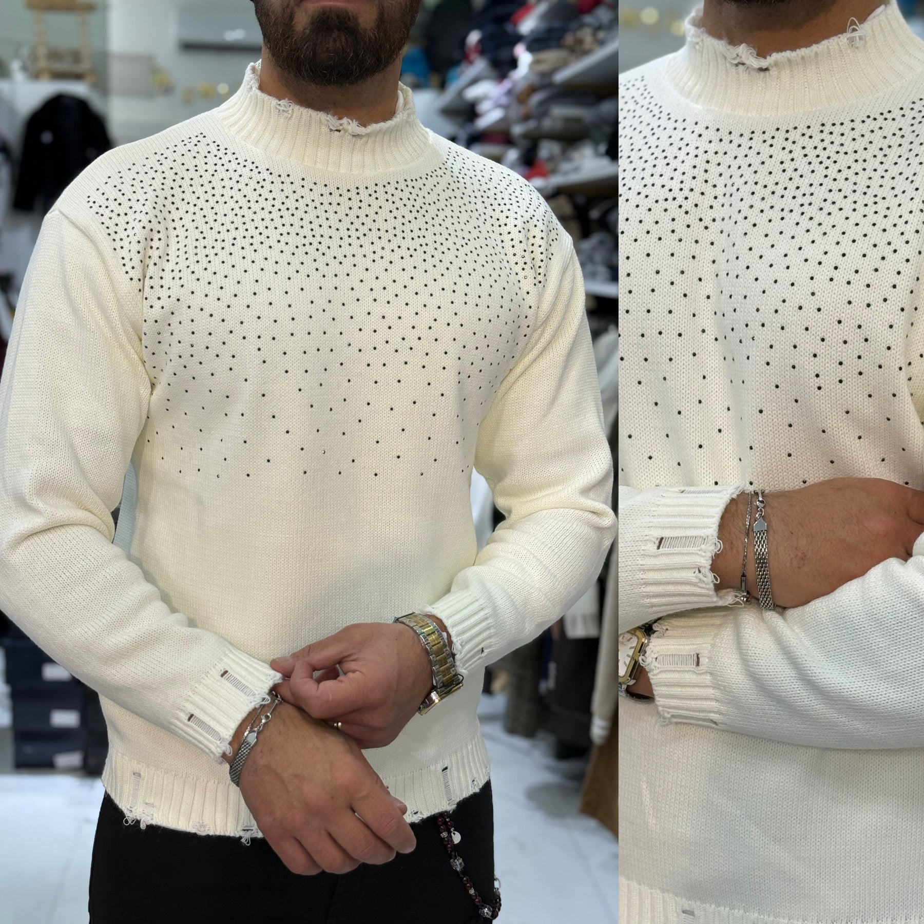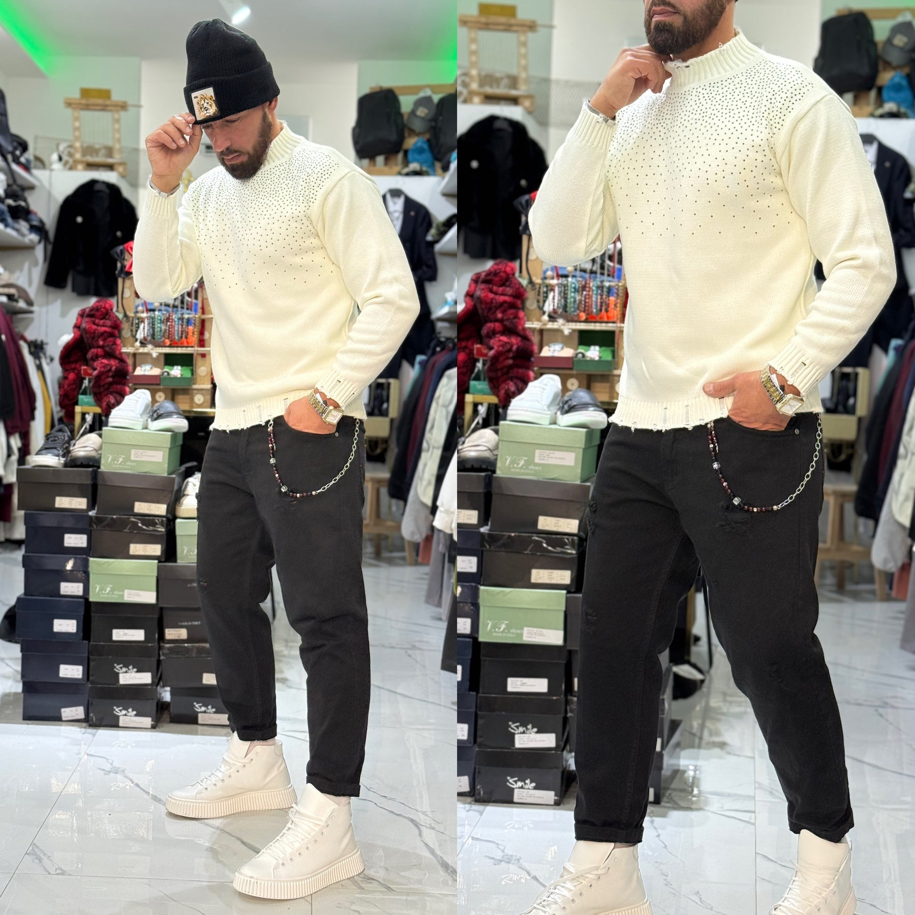 Maglione mezzocollo Diamond Bianco o nero il modello indossa m