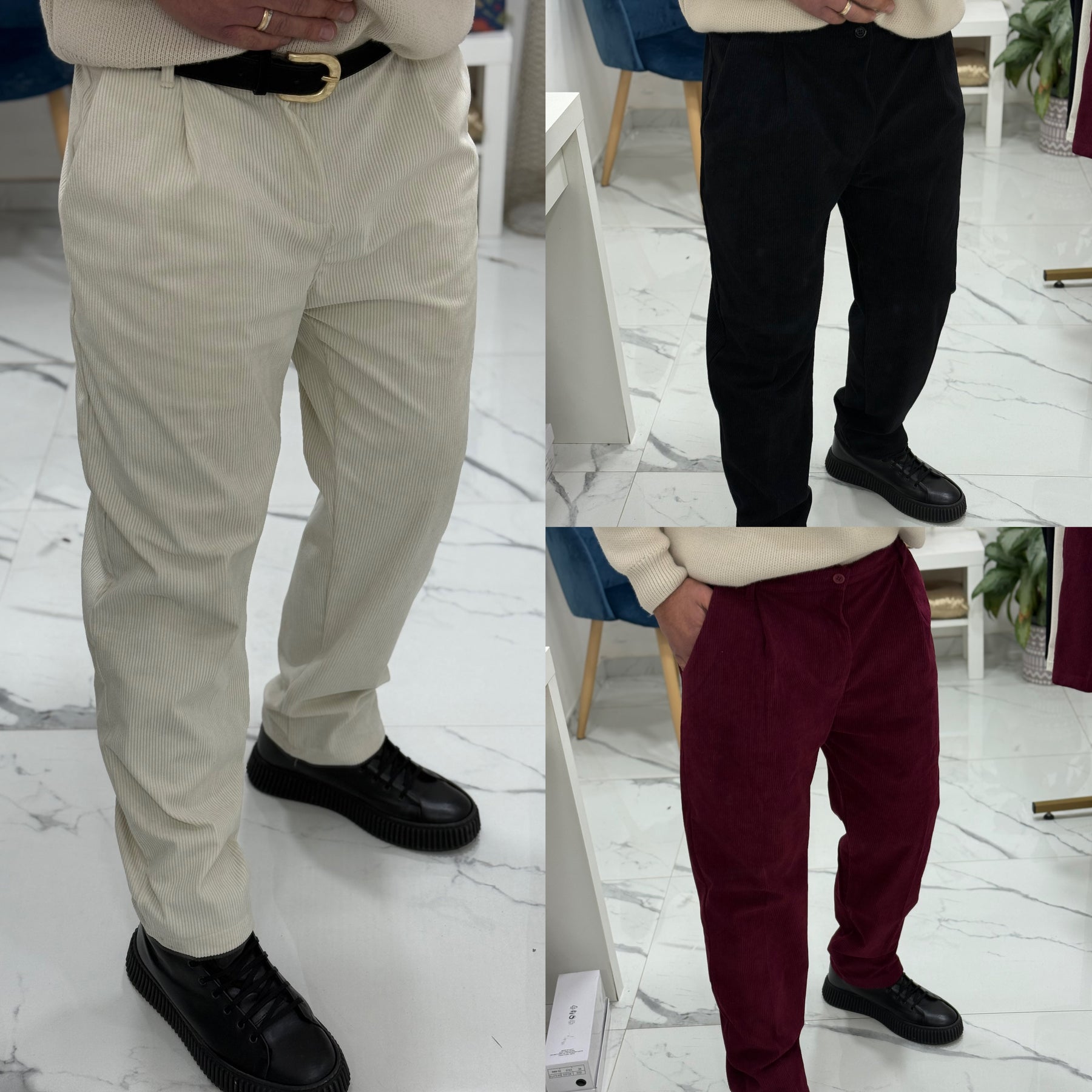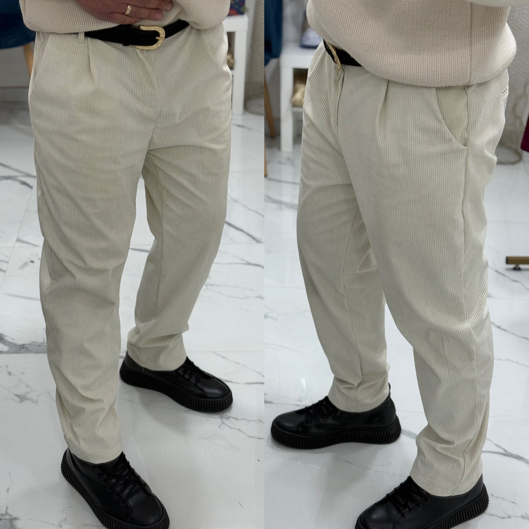 Pantalone baggie in velluto Tokyo il modello indossa 50