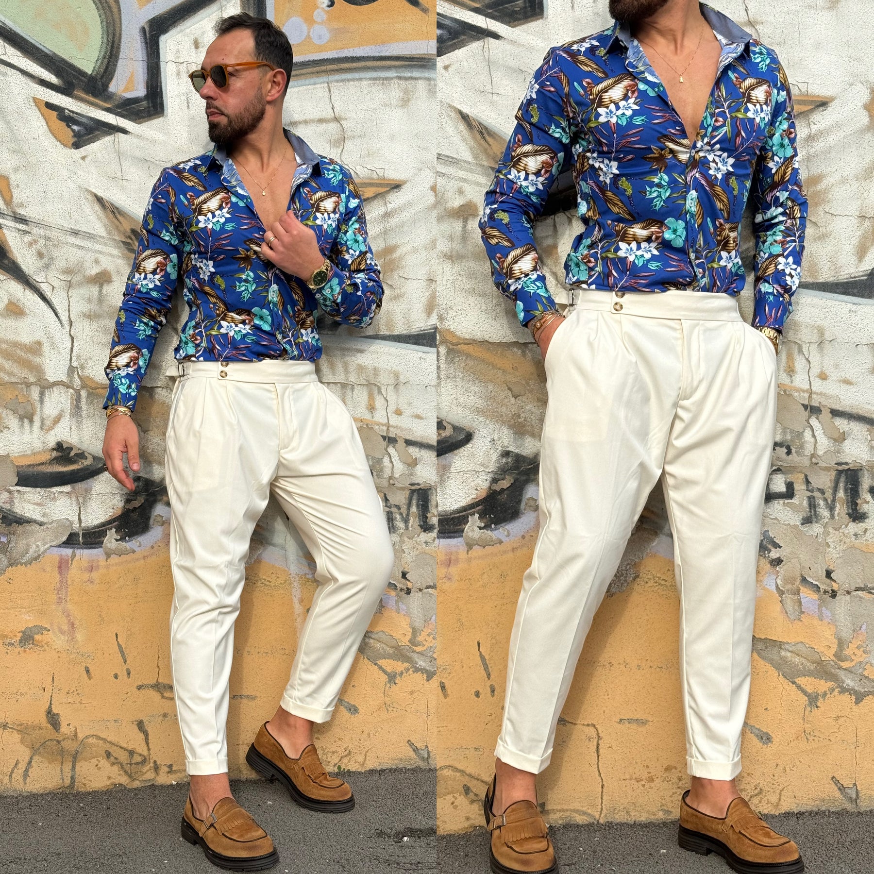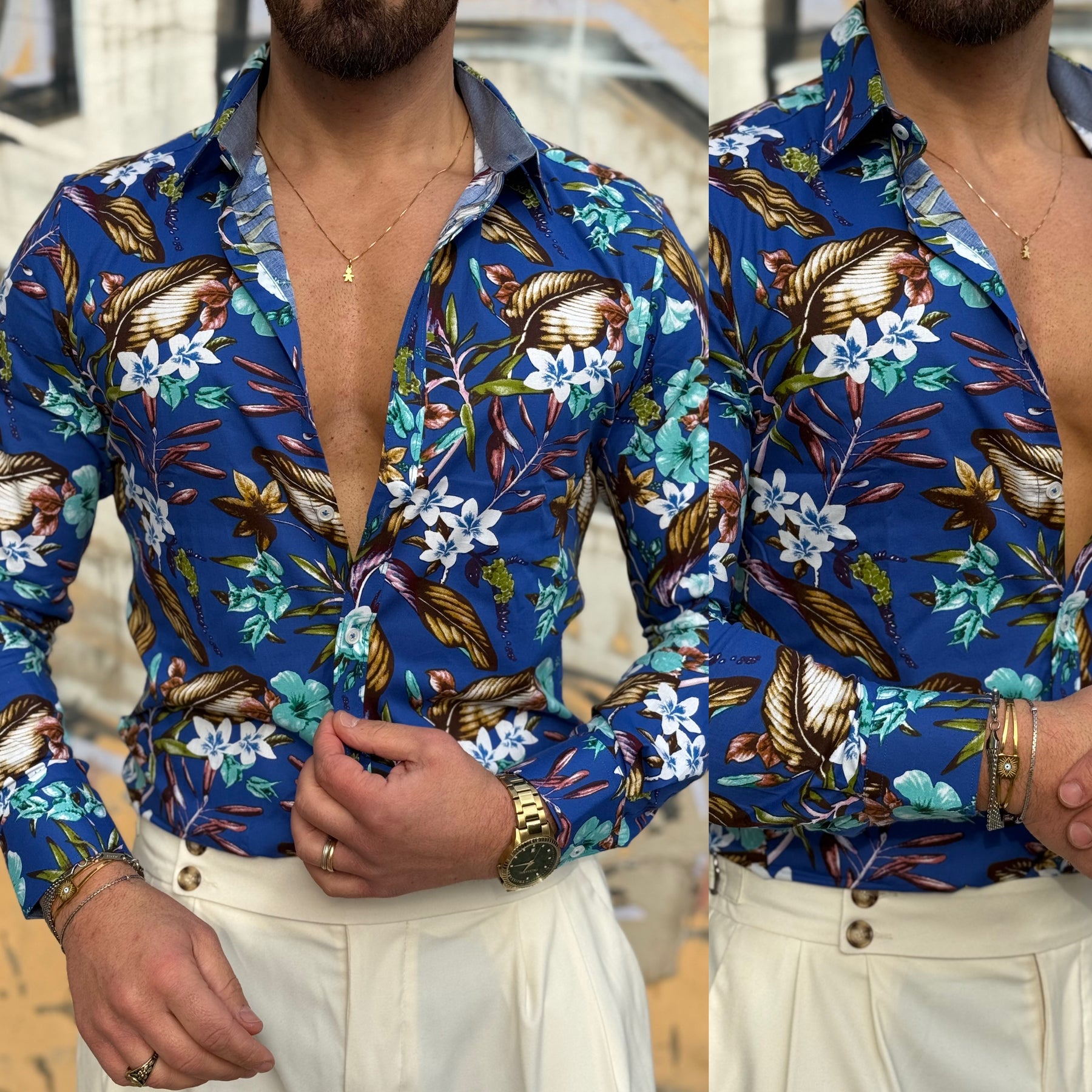 Camicia collo francese floreale Slim Dubai il modello indossa L