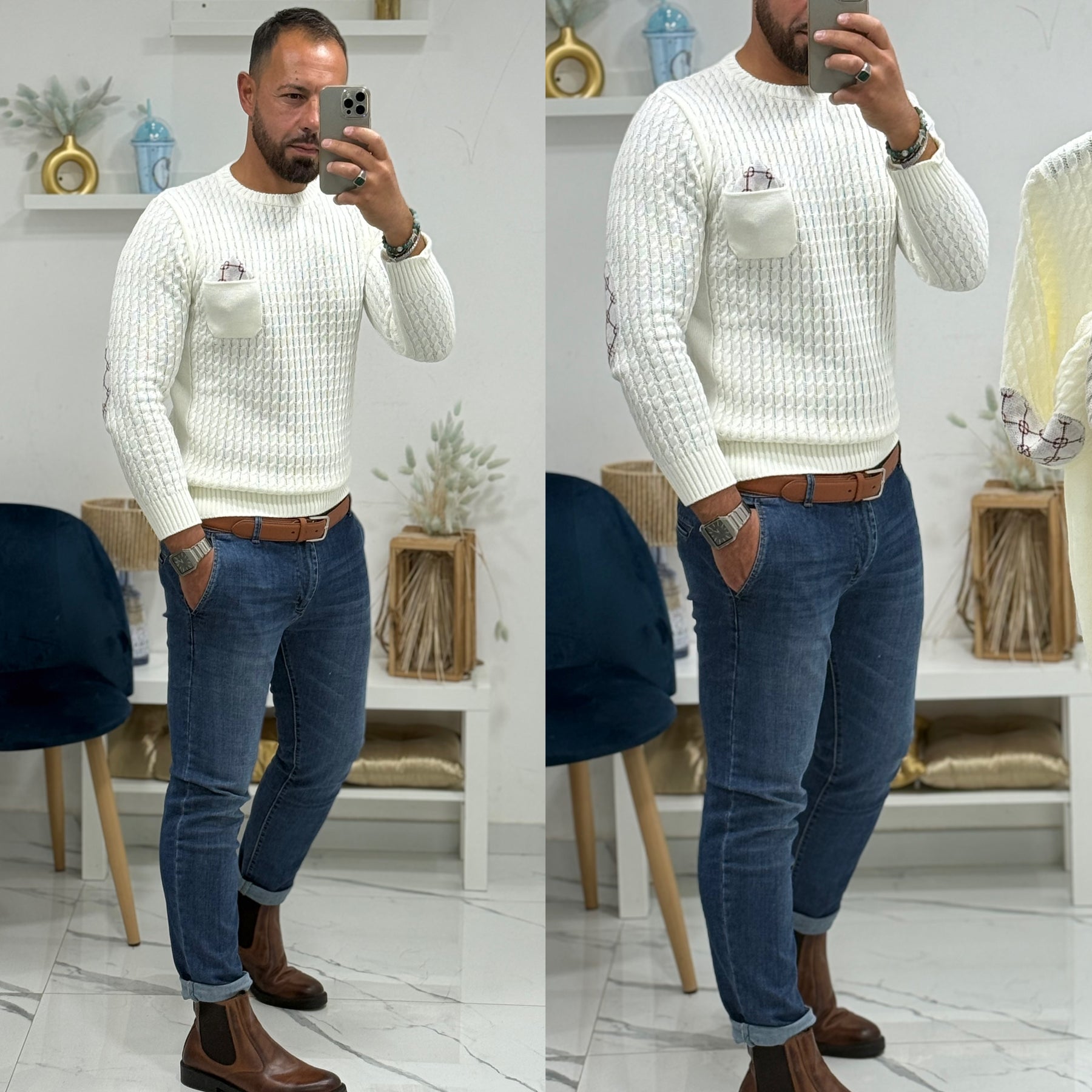 Maglione pochette e toppa slim Madrid Il modello indossa M