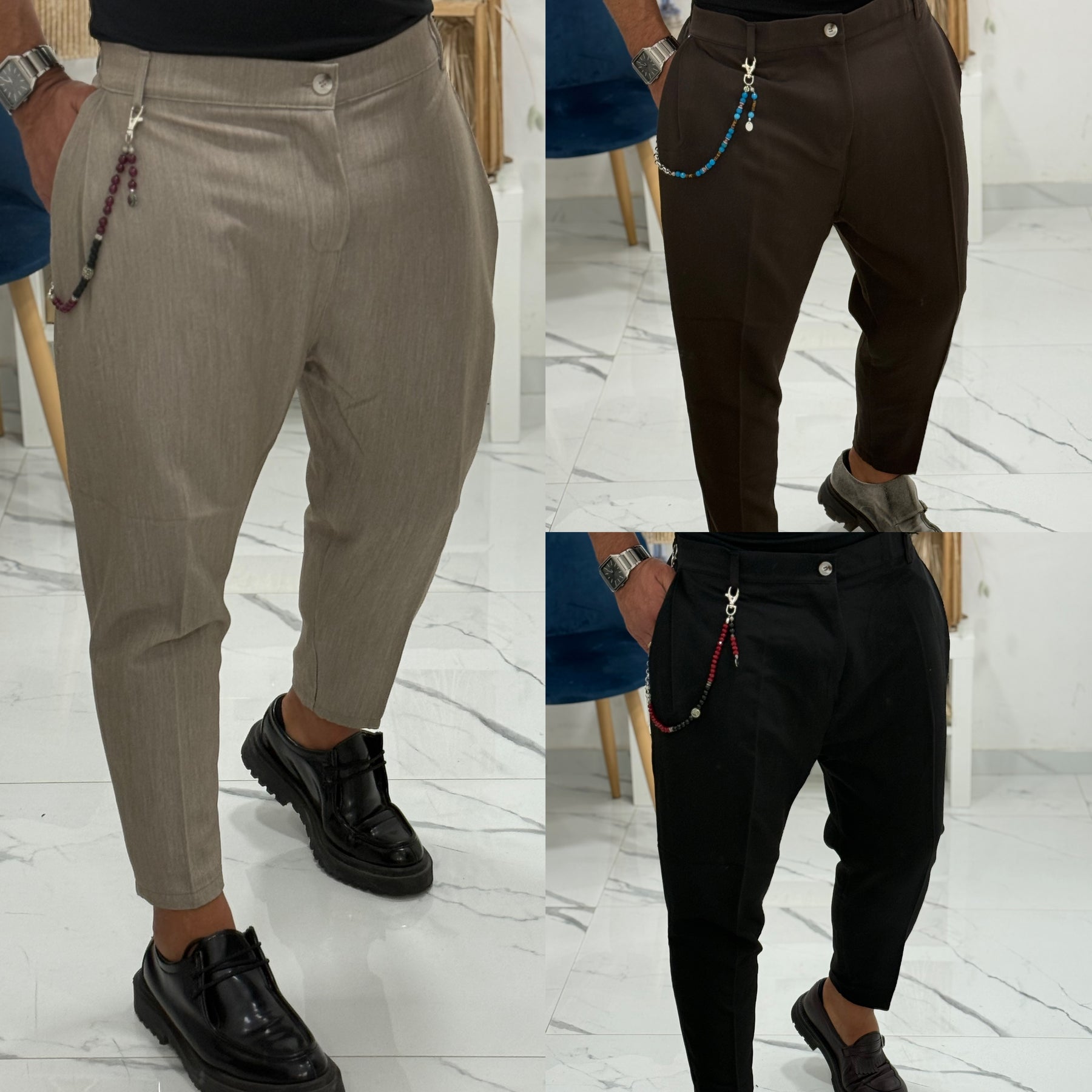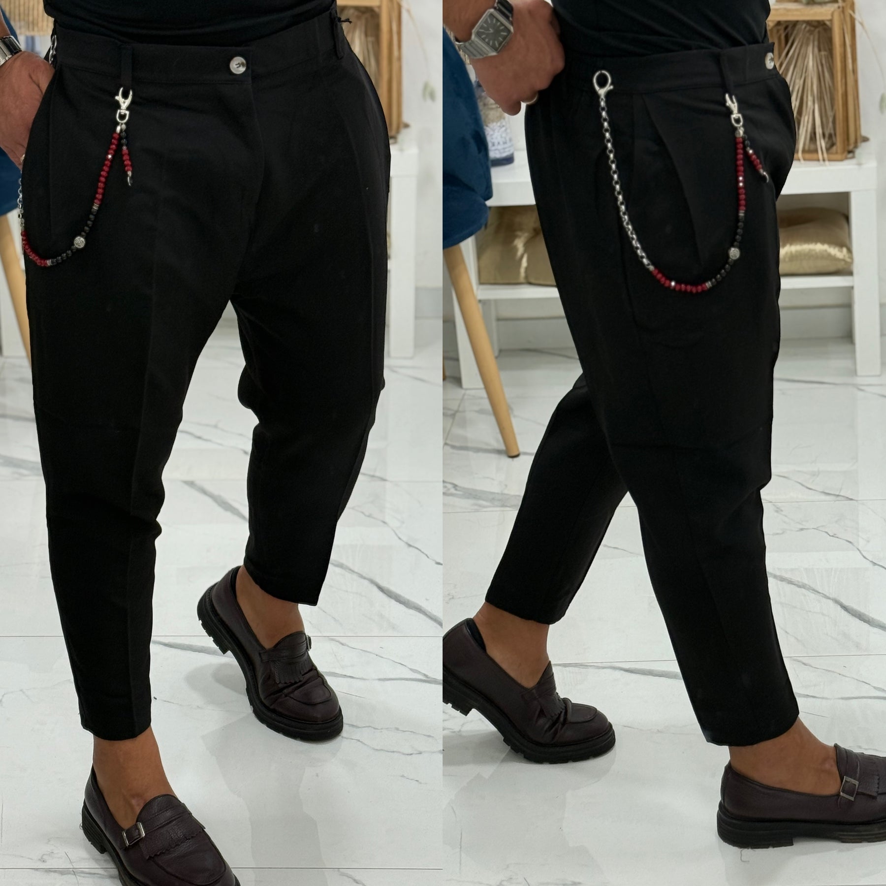 Pantalone Capri tasca America Adon Con molla dietro e bottone il modello alto 1,80 x 85 kg indossa XL